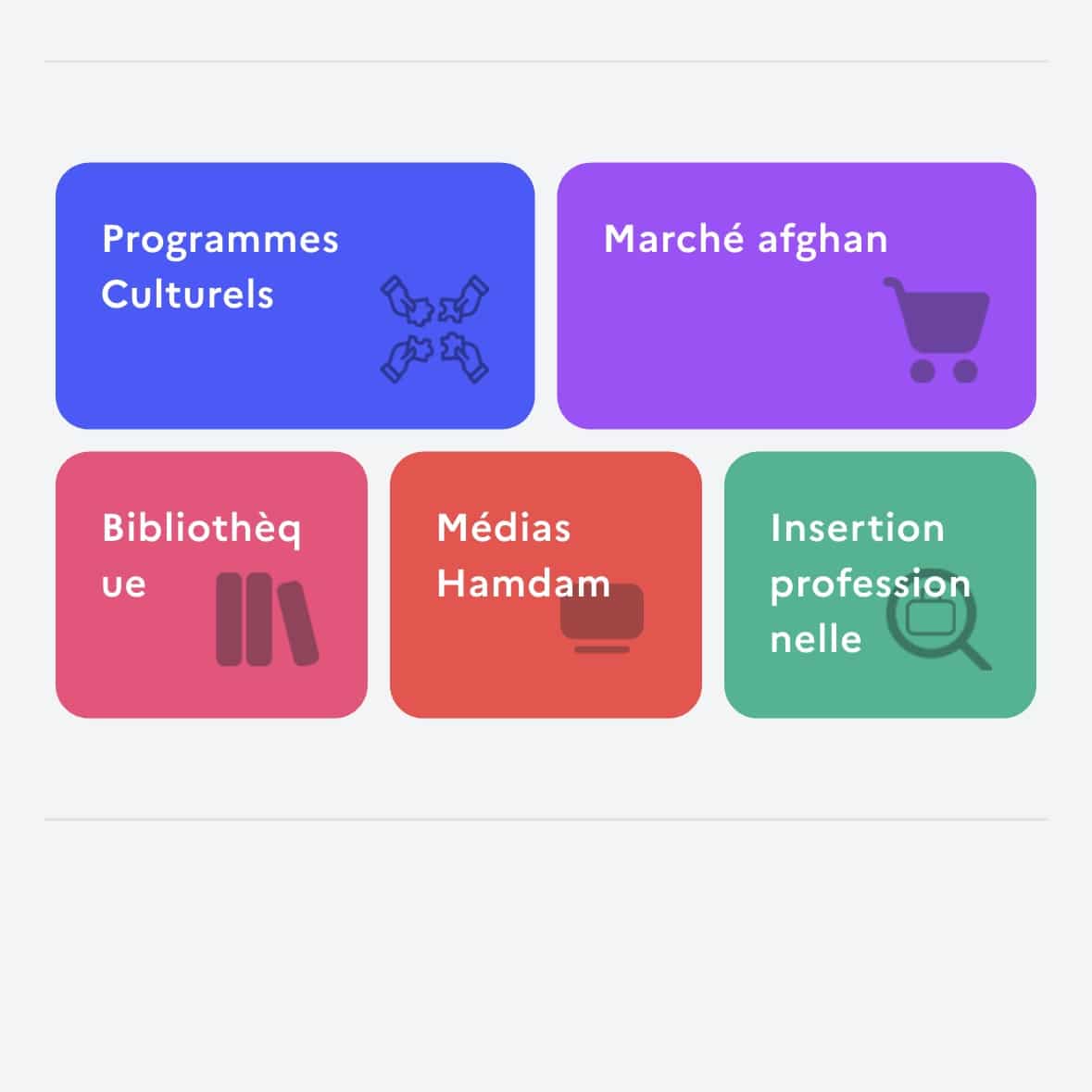 From the main menu of the Vatandar app, every Afghan refugee can easily select the category of service they need.